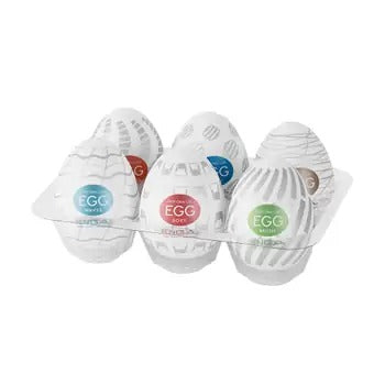 TENGA EGG series eggs may seem small, but thanks to the extra expandable material, they can hug almost any size! TENGA EGG Standard masturbation eggs 6 pcs are made of flexible elastomer that adheres perfectly . The design on the packaging of the individual eggs reflects the internal structure of the stimulation grooves.