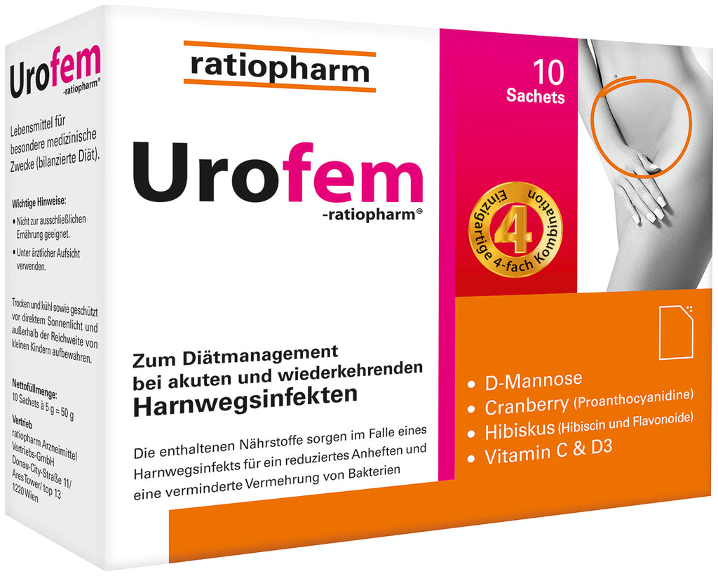With the development of Urofem-ratiopharm®, a unique 4-fold combination of high-quality plant substances and vitamins is available, which contributes to positively influencing the disease through diet.